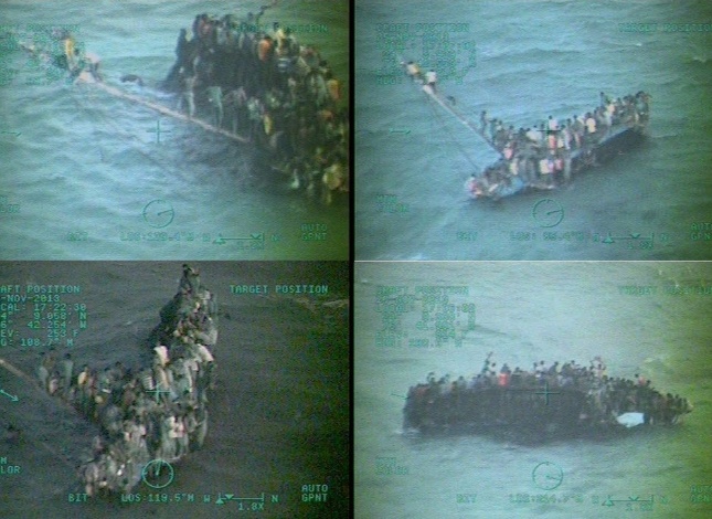 Imagem 30/39: Na série de imagens fornecidas pela Guarda Costeira dos EUA, cerca de 100 haitianos agarram casco de um cargueiro que naufragou na costa de Staniel Clay, nas Bahamas, nesta segunda-feira (25). O barco, que transportava imigrantes, estava sobrecarregado. Ao menos 10 imigrantes haitianos morreram e 100 ficaram à deriva na água. Em comunicado divulgado hoje, a Guarda Costeira dos EUA afirma que os imigrantes estavam agarrados ao casco quando as equipes de resgate chegaram. Foram utilizados aviões, helicópteros e uma balsa para o resgate das vítimas MAIS Guarda Costeira dos EUA/AFP