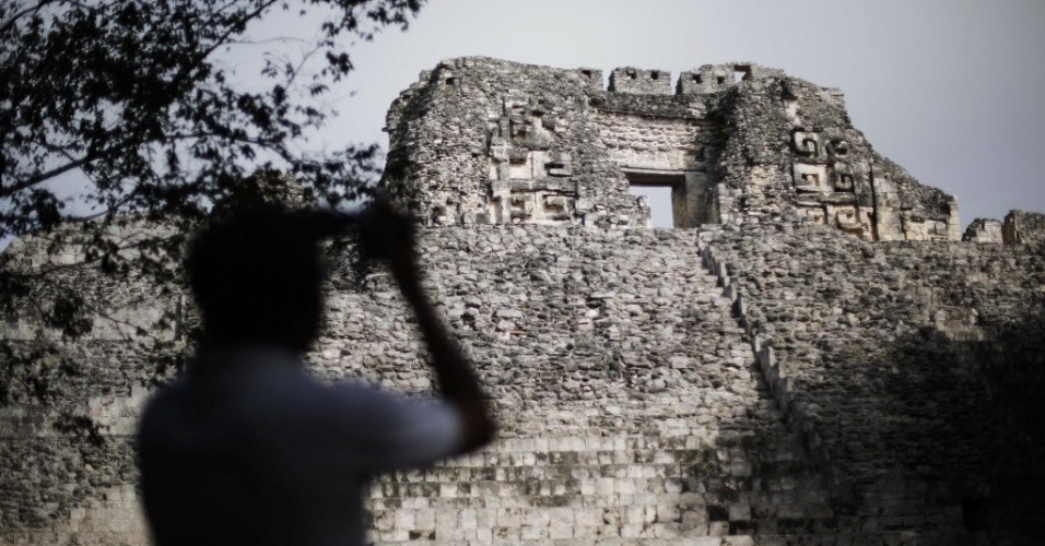 Imagem 58/73: Homem fotografa pirâmide no sítio arqueológico de Becan, em Campeche, no México. O local foi considerado patrimônio da humanidade pela Unesco. A cidade antiga no sul do México abrigou mais de 50.000 maias Bernardo Montoya/Reuters