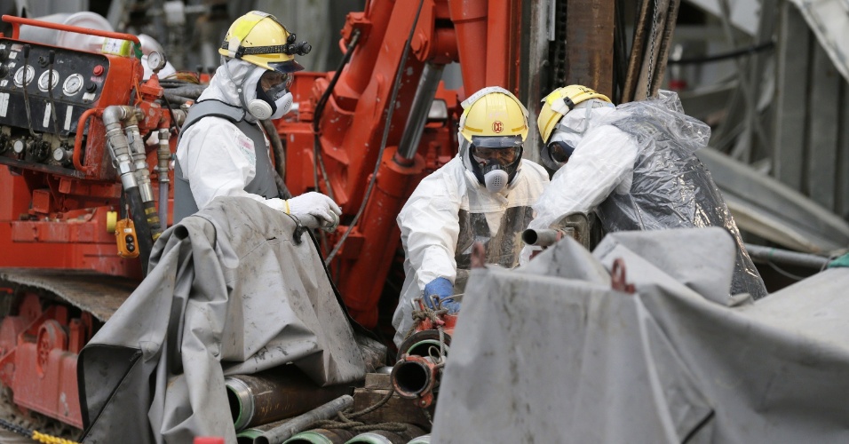 Imagem 32/39: Trabalhadores constroem muro de gelo debaixo dos reatores danificados da central de Fukushima, em Tóquio, nesta quarta-feira (9), para conter o vazamento de água radioativa. A companhia Tokyo Electric Power (TEPCO) começou a cavar as trincheiras para instalar uma enorme rede de dutos debaixo da usina, por meio dos quais planeja fazer passar uma substância refrigerante que congelará o solo, formando uma barreira física a fim de evitar que a água limpa que flui das montanhas se misture à água contaminada debaixo dos reatores danificados MAIS Kimimasa Mayama/AFP