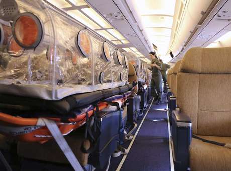 Aeronave equipada com todas as medidas médicas e de segurança enquanto leva o espanhol infectado pelo vírus do Ebola